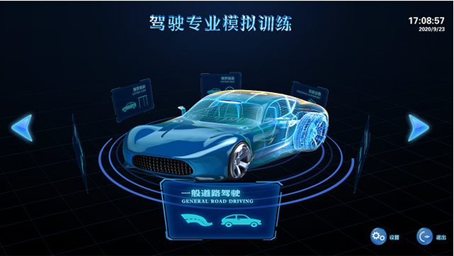 小车类驾驶技能教学模拟训练系统,包含理论知识,基础驾驶,场地驾驶,道路驾驶,一般道路驾驶,以及应急避险体验。软件用于小车驾驶模拟器上。