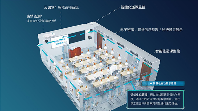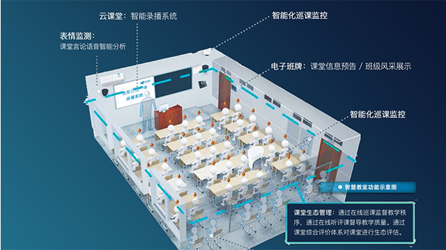 智慧教室通过学生专注度分析,科学、智能地督导课堂秩序及教学质量;管理强化教学质量,利用信息化手段促进课堂智慧生态的建立。